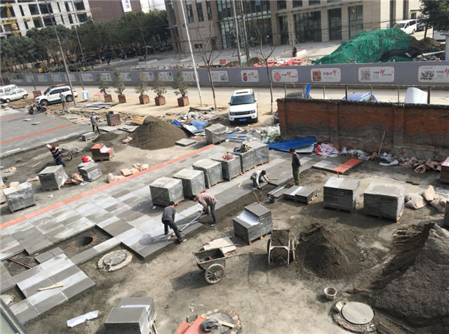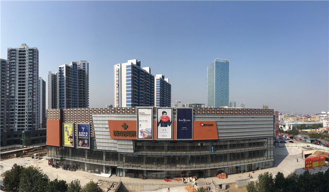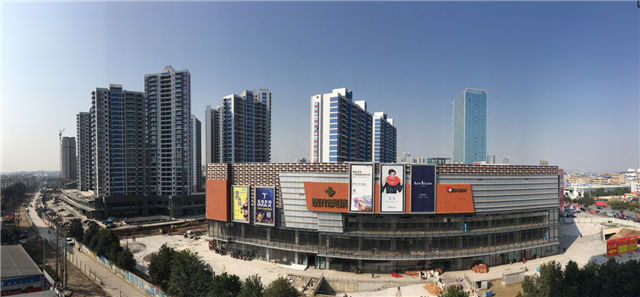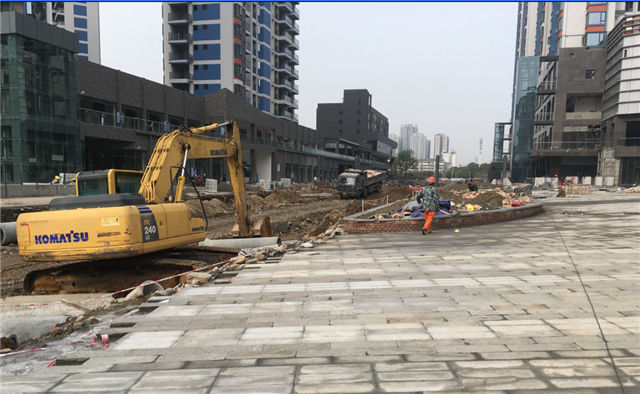7、室外附屬:居然之家主入口室外附屬全部完成;時(shí)尚百貨及弘光路一側廣場(chǎng)大面積石材鋪貼完成,8#、9#樓一側室外石材鋪裝大面積完成。居然之家四層屋面鋪裝及綠化施工完畢。A、B區中間市政道路正在埋管施工中。