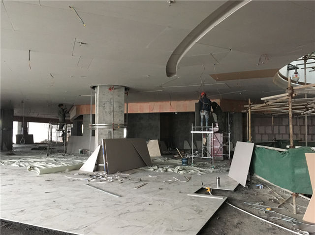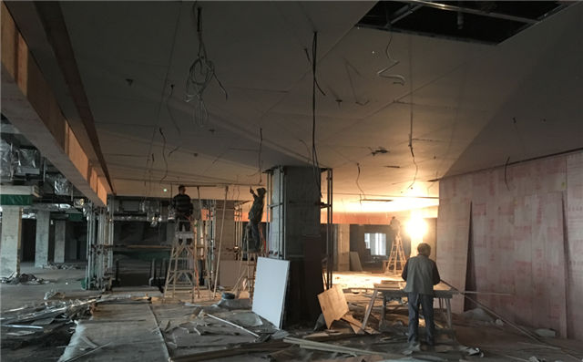 1、時(shí)尚百貨:一至五層公共區域吊頂吊頂造型、封板完成,一至三層公共區域地磚粘貼完成,四、五層正在做地磚粘貼。商家裝修正在進(jìn)行中。